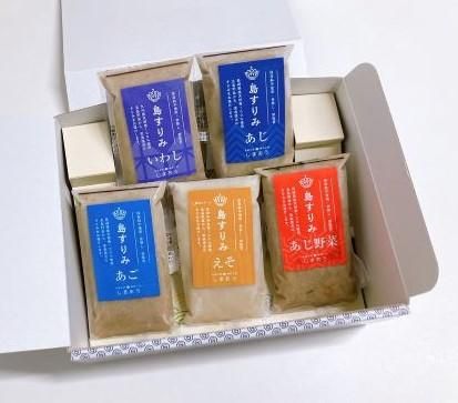 <内容量>島すりみ あご×1袋 あじ野菜×1袋 いわし×1袋 えそ×1袋 あじ×1袋